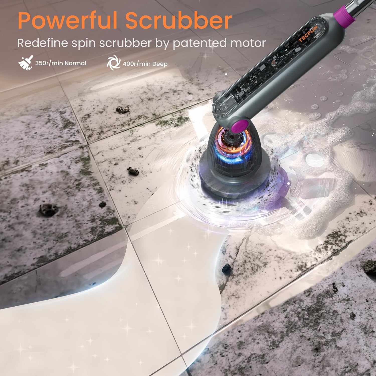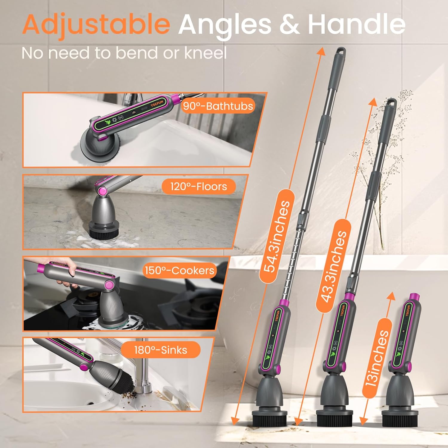 Electric Spin Scrubber 16 in 1 Cleaning Brush with Adjustable Angles & Heads, Bathroom Power Scrubber with Extendable Handle, Interactive LED, Cleaning Supplies for Toilet,Kitchen,Shower-Grey