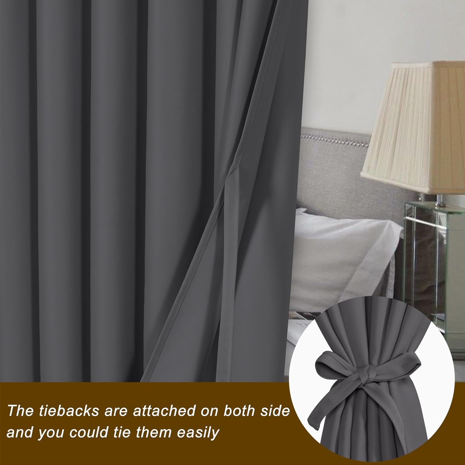 Hiasan Room Divider Blackout Curtains,Extra Wide 100 x 84 Inches Energy Smart&Noise Reducing Grommet Thermal Insulated Curtain for Patio Door,Any Room Partition,1 Panel Sewn with Tiebacks,Dark Grey