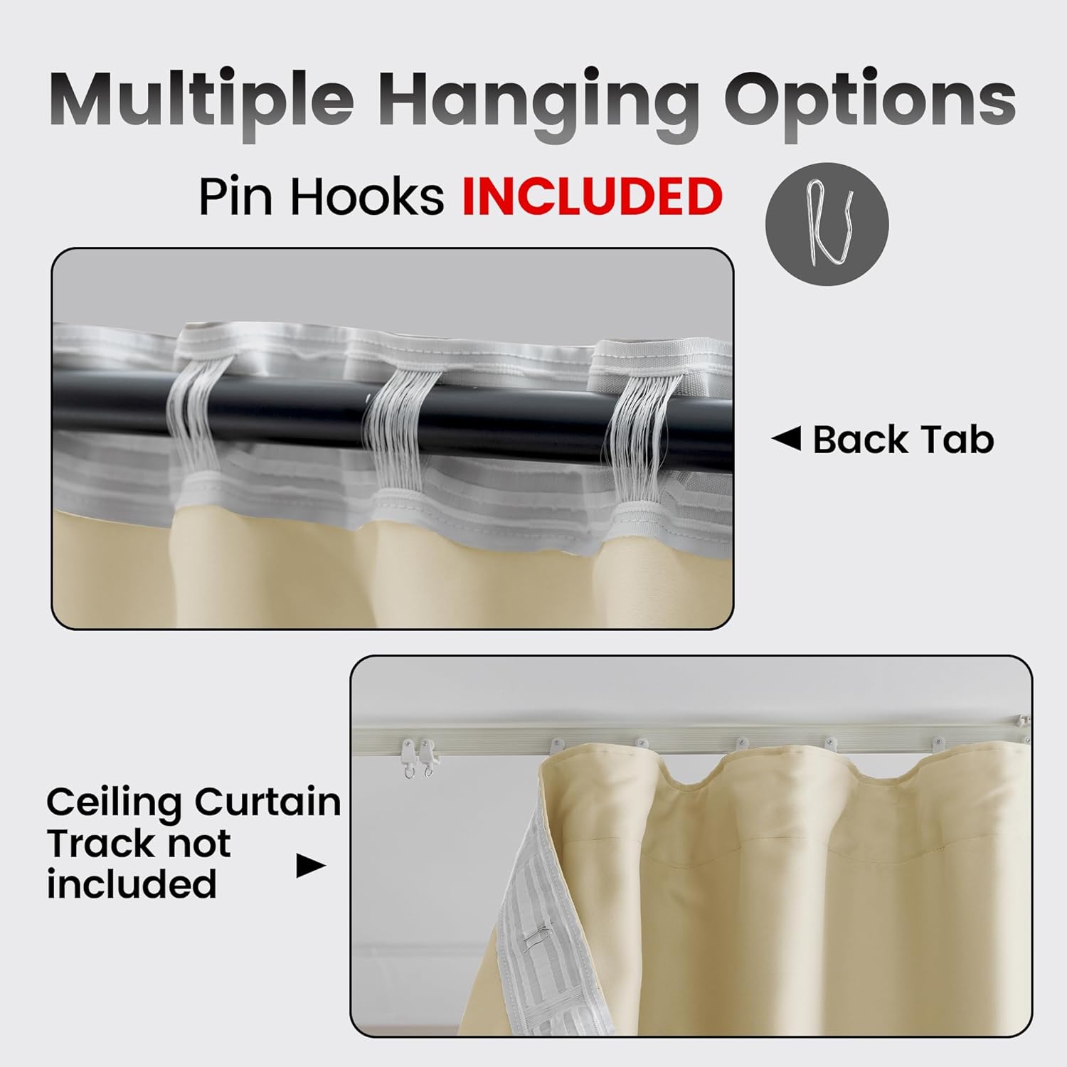 Room Divider Curtains,Back Tab Blackout Ceiling Track Curtains with Hook, Extra Wide Theater Curtains for Living Room and Bedroom (1Panel, Beige, W8.3ft x H7ft)
